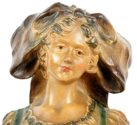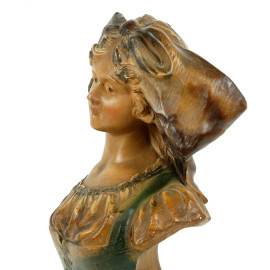 Busto di fanciulla, scultura in terracotta, cm h 38, XX secolo, (difetti).