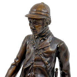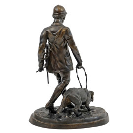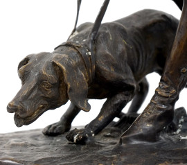 Cacciatore con cane, scultura in bronzo, XX secolo, cm h 63x45x26