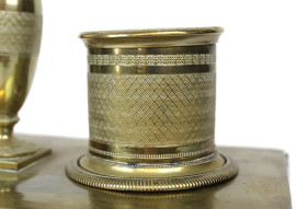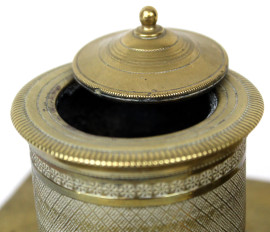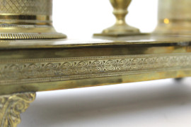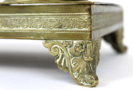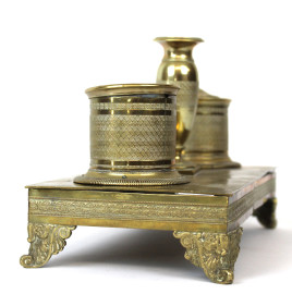 Calamaio in bronzo finemente cesellato, poggiante su quattro piedini, XIX secolo, cm h 16x27,5x13,5, (difetti).