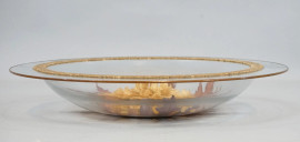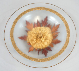 Centrotavola in vetro con fiore, cm h 7,5x45, diam. cm 45, XX secolo, (segni del tempo).