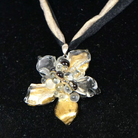 Collana con ciondolo in vetro nei toni del nero e dell'oro, lunghezza cm 24,5, (difetti)