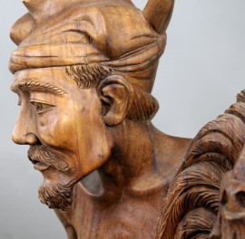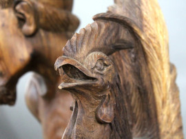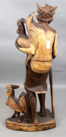 Contadino con galline, scultura in legno, altezza cm. 99, arte orinetale, XX secolo.