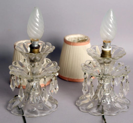 Coppia abat jour in cristallo, altezza 24 cm, anni '40, (mancanze).