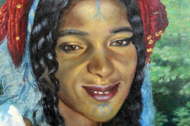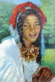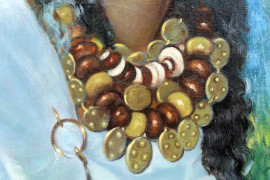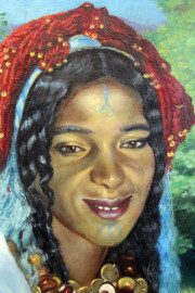 Donna africana, olio su tela, cm 61x44,5, firmato Angelo Garino, entro cornice.