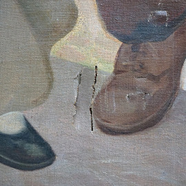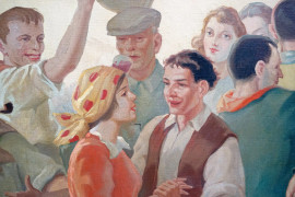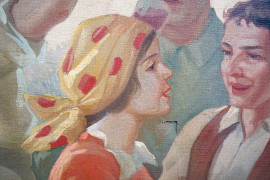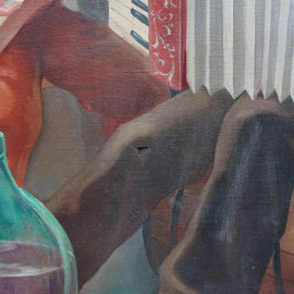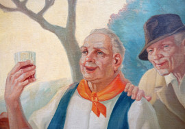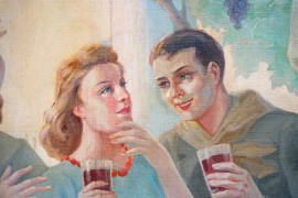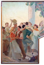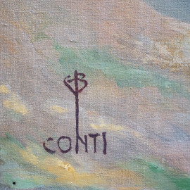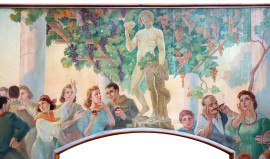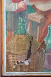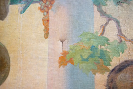 Enoteca Nazionale, dipinto sovrappòrta ad olio su tela, misure totali cm 386x197, firmato Conti, entro cornice, (difetti sulla tela)