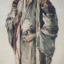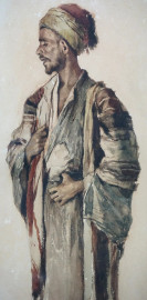 Mendicante arabo, acquarello su carta, cm 50x30, entro cornice.