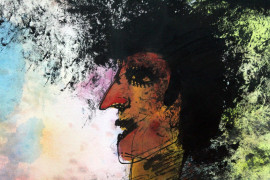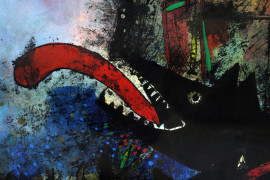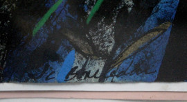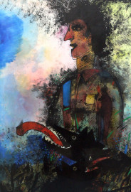 Figura con cani, tecnica mista su carta, cm 76x53, firmato, entro cornice