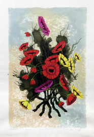 Fiori, multiplo su carta, prova d'autore a firma R. Ratto, cm.69x50, entro cornice.