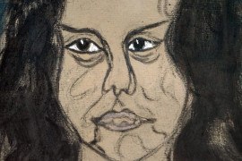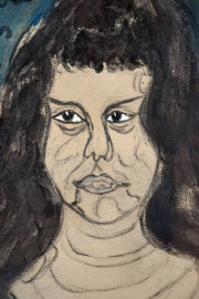 Ritratto di donna, tecnica mista su cartone, cm 70x49,5, datato a retro 1970, entro cornice