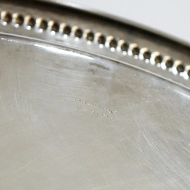 Grande vassoio di linea tonda in metallo argentato, marcato Calegaro, XX secolo, diam. cm 54