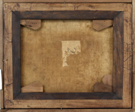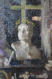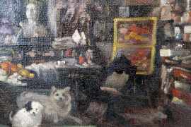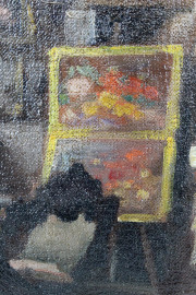 Interno di studio d'artista, olio su tela, cm 30x36, firmato, entro cornice