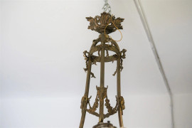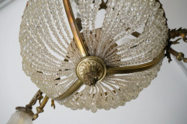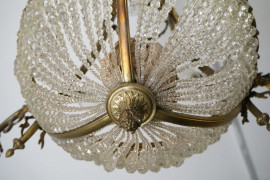 Lampadario in vetro a tre bracci in vetro, cristallo e metallo dorato, (difetti)