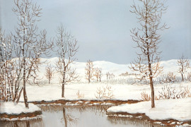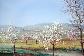 Le stagioni, tre dipinti a tempera su carta, cm 16x20, firmati, entro cornici.