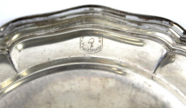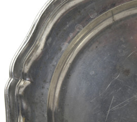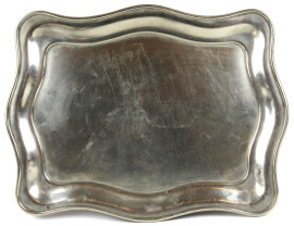 Lotto composto da due vassoi e due sottobottiglia in metallo argentato, misure max cm 41x31,5, XX secolo