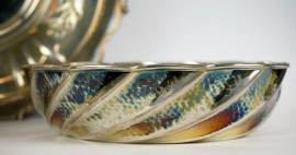 Lotto composto da tre oggetti in argento, misure max cm 5x26, peso lordo gr. 654, (difetti).