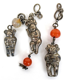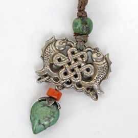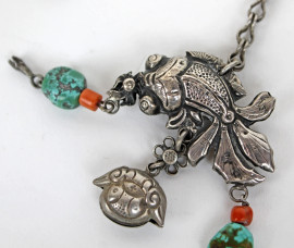 Lotto composto da un acchiappa sogni in metallo dorato e nove ciondoli raffiguranti animali in metallo argentato ed altri materiali, misure max cm 14, arte orientale, XX secolo, (difetti e mancanze)