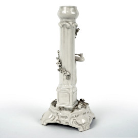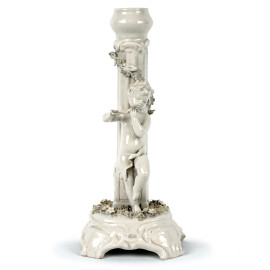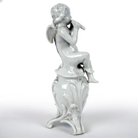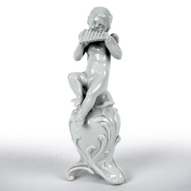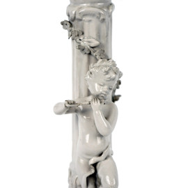Lotto composto da una scultura ed un candeliere in porcellana raffiguranti cherubini che suonano, alt. max cm 23, marcati Ginori alla base, (segni del tempo).