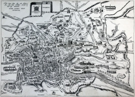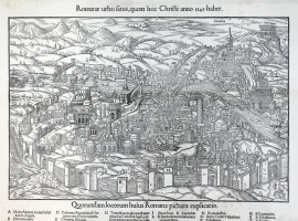 Lotto di cinque stampe raffiguranti piante della città di Roma in epoche diverse, cm 40x60, XX secolo, entro cornici, (macchie).