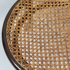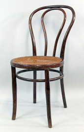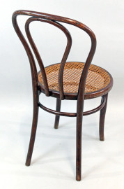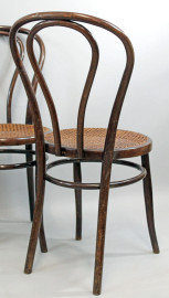 Lotto di quattro sedie stile Thonet, schienali a giorno e sedute in paglia di Vienna, poggianti su gambe a sciabola, inizi XX secolo, cm h 88, (difetti).