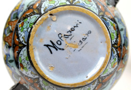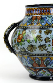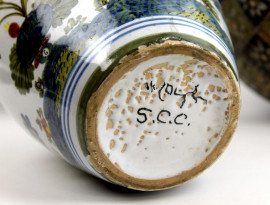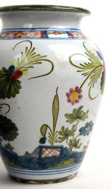 Lotto di tre vasi in ceramica policroma, manifatture diverse, altezza max cm 26, (difetti)