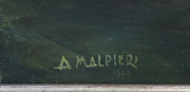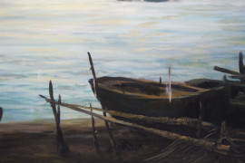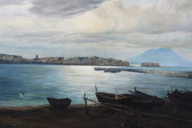 Marina, olio su tela, cm 110x151, entro cornice (difetti sulla tela)