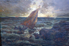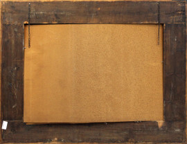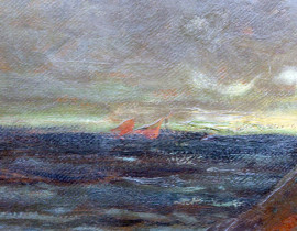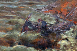 Marina con imbarcazioni, olio su cartone, cm 69x99, fine XIX secolo, entro cornice
