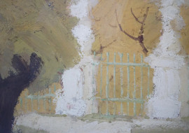 Paesaggio, olio su tela, cm 40x51, entro cornice