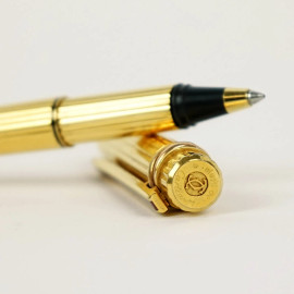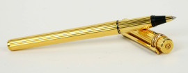 Must de Cartier, penna a sfera in metallo dorato entro astuccio originale, lunghezza cm 13,5, completo di certificato di garanzia.