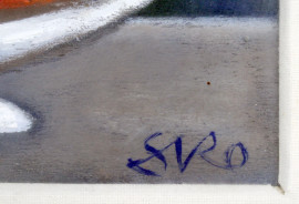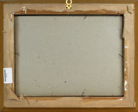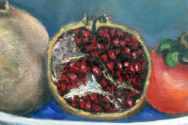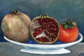 Natura morta con frutta, olio su tavola, cm 18x28, firmato, entro cornice.