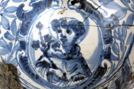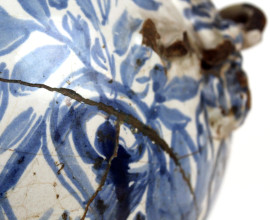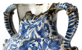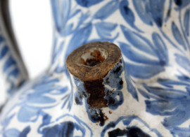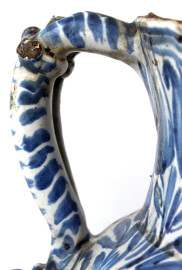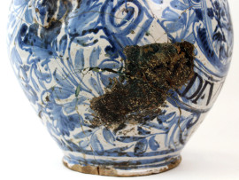 Orciolo in maiolica Savona, XVIII secolo, decorato in monocromia blu, cm h 37, (difetti e mancanze)