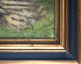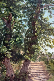 Paesaggio con alberi, olio su cartone telato, cm 50x40, firmato, entro cornice.