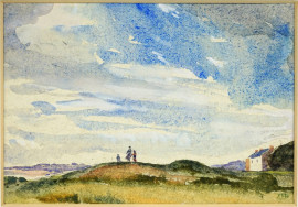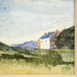 Paesaggio con figure, acquarello su carta, cm 17x25, firmato E.Tito, entro cornice.