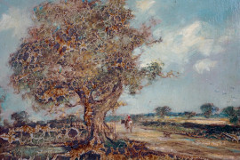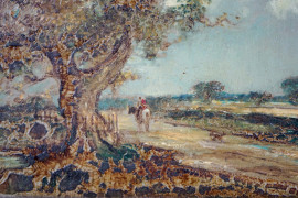 Paesaggio con quercia, olio su masonite, cm 23x28, XX secolo, entro cornice.