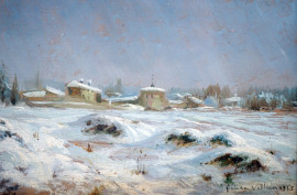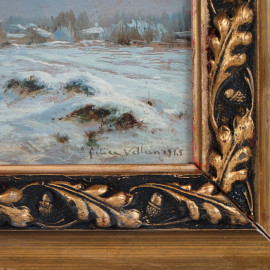 Paesaggio invernale, olio su tavola, cm 14,5x22, firmato, entro cornice.