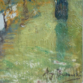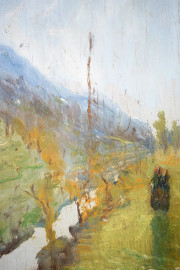 Paesaggio montano, olio su tavola, cm 22x14, firmato, entro cornice.
