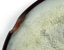 Piatto in ceramica smaltata bianca e marrone, diametro cm 41, XX secolo, (difetti).