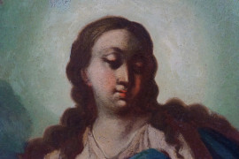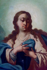 Pittore della fine del XVIII secolo, Immacolata Concezione, olio su tela, cm 99x72, entro cornice, (difetti sulla tela).