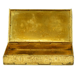 Portacipria in metallo dorato e cesellato con coperchio in smalto blu, cm 5,5,x9,5, XX secolo, (segni del tempo).