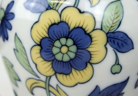 Richard Ginori, lotto di due potiches in porcellana bianco e blu, decori a motivi fogliacei policromi, cm h 30,5, marcate alla base, XX secolo.