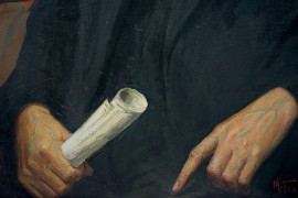 Ritratto di anziano, olio su tela, cm 92x73,5, firmato M. Fenocchio, entro cornice