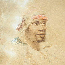 Ritratto di arabo, tecnica mista su carta, cm 24,5x14,5, firmato, entro cornice, (difetti sulla carta).