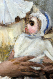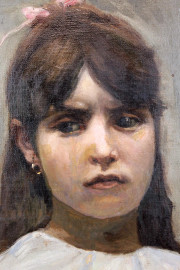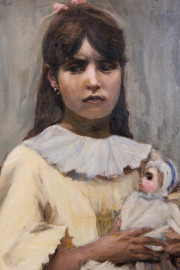 Ritratto di fanciulla con bambola, olio su tela, cm 60,5x43, firmato Cesare Ciani, entro cornice, (piccole cadute di colore).