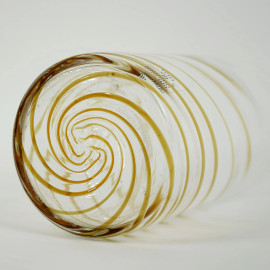 Salviati Murano, vaso in vetro con decoro giallo a spirale, cm h 20, firma incisa sotto la base, XX secolo.