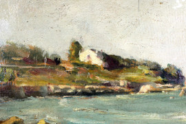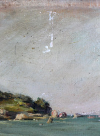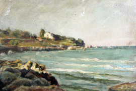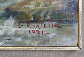 Scorcio costiero, olio su cartone, cm 27x37, firmato Luigi Martella, entro cornice, (lievi difetti).