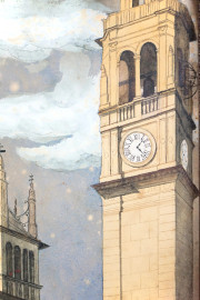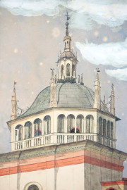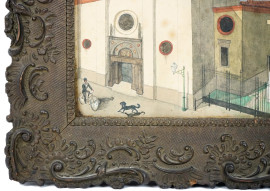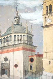 Scorcio della Chiesa di Santa Maria di Piazza a Busto Arsizio, acquarello su carta, cm 33x24,5, firmato e datato a tergo, entro cornice.