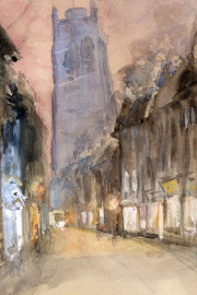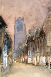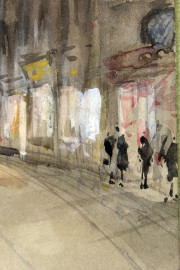 Scorcio di città francese, acquarello su carta, cm 18x15, firmato, entro cornice.