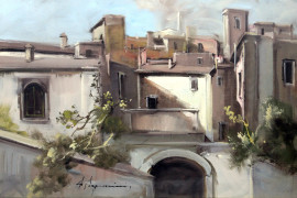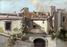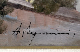 Scorcio di paese, olio su tela , cm 50x70, firmato, entro cornice.