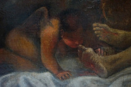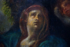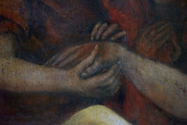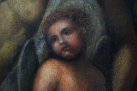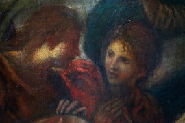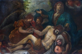 Scuola fiamminga del XVII secolo, La pietà, olio su tela, cm 76,5x131, (lievi difetti).