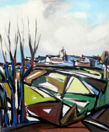 Paesaggio,olio su tela 60x50 cm,entro cornice.