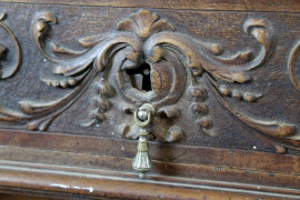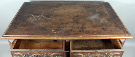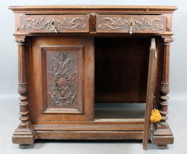 Servant in stile rinascimentale, in noce a due cassetti e due sportelli intagliati e scolpiti a girali vegetali, altezza cm 92x107x58, XIX secolo (evidenti difetti)
